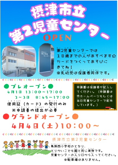 令和8年4月1日より、摂津市立第2児童センターがオープンします。